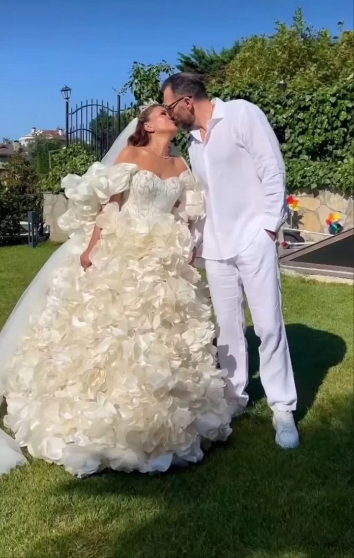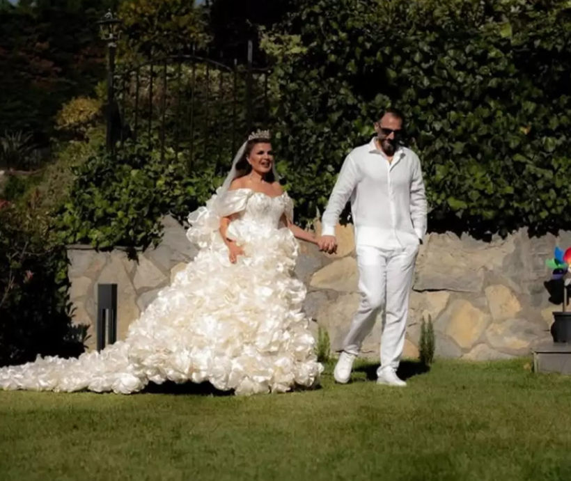 54 yaşındaki Sayarı’nın evliliği kadar, seçtiği gelinlik de büyük ilgi gördü.